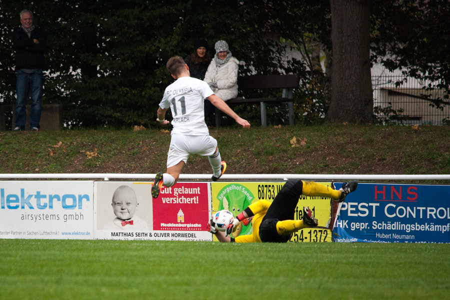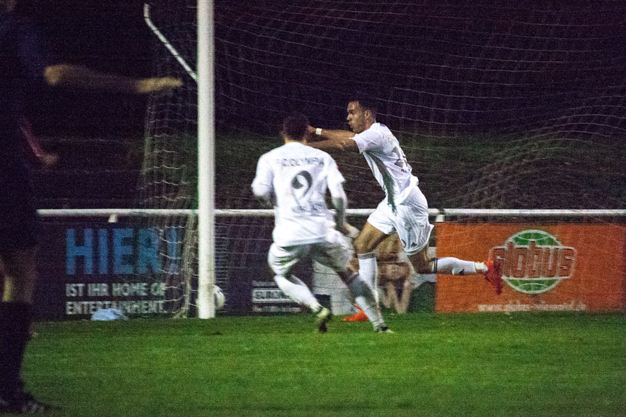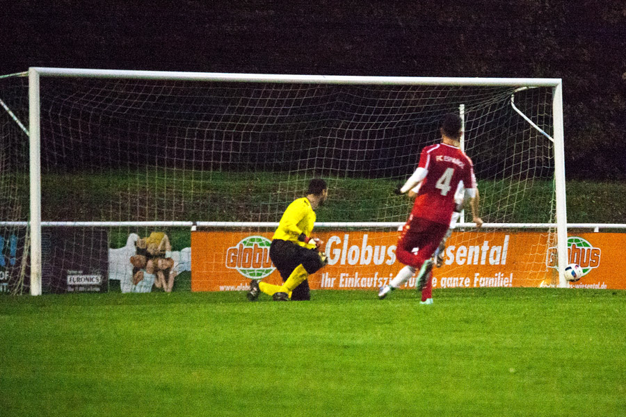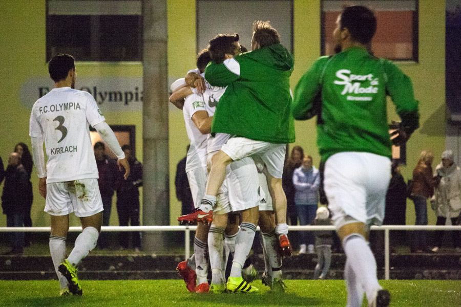 In der 2. Halbzeit dann das gleiche Bild, wobei zu beobachten war, dass die Gäste-Elf fortan mit nicht mehr so viel Druck und Energie dem Kirrlacher Spiel entgegentrat. Folgerichtig erspielten sich die „Olympianer“ eine leichte Überlegenheit. Bereits in der 56. Minute war es dann Rindone, der aus aussichtsreicher Position den Ball nicht richtig traf. Kirrlachs Übergewicht nahm nun etwas zu und in der 80. Minute tankte sich Redekop geschickt durch, sein Flachschuss landete zum Entsetzen der Kirrlacher Fans am Torpfosten. Als alle Zuschauer mit einem Remis rechneten, fiel dann die Spielentscheidung. Über links schaltete sich Ayhan Akdemir ins Sturmspiel ein, setzte sich gegen mehrere „Spanier“ durch und passte nach innen, wo der aufgerückte Abwehrspieler Gärtner aus kurzer Distanz zur umjubelten Führung einschoss (89.). Das Spiel war entschieden!In der anschließenden Pressekonferenz lobte Kirrlachs Trainer Backmann die Geschlossenheit und das taktische Verständnis seiner Truppe, während der Gästetrainer Motekallemi mit dem Schicksal haderte, da man zuletzt in den Schlussminuten wertvolle Punkte liegen ließ, so auch an diesem Tag. Dennoch erkannte er den Kirrlacher Sieg, glücklich zustande gekommen, letztendlich an. (JH)