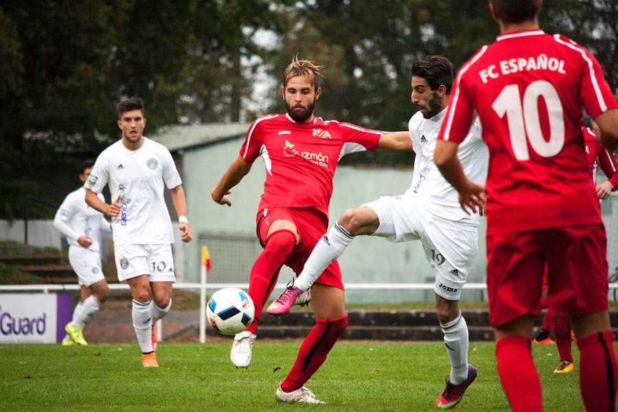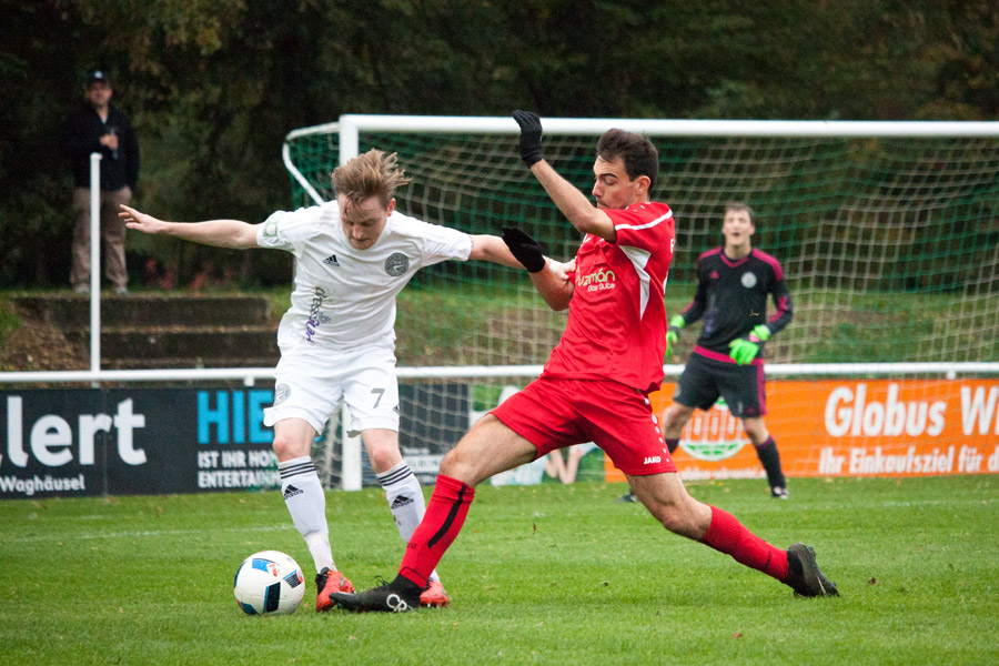 Vor einer beachtlichen Zuschauerkulisse von über 400 Fußballfans entwickelte sich von der ersten Minute ein Landesligaspiel erster Güte, bei dem beide Mannschaften den nötigen Respekt voneinander zunächst nicht ablegen konnten. So war das Spiel von zahlreichen Zweikämpfen und taktischem Geplänkel im Mittelfeld geprägt. Es wurde um jeden Zentimeter gekämpft, jeder Ballverlust wurde schonungslos ausgenutzt und führte zu spielerischen Vorteilen. Von daher dominierten beide Abwehrreihen und Strafraumszenen waren leider Mangelware. Dennoch war das Spiel rassig, schnell, spannend und sehenswert. Beeindruckend mit welcher Leichtigkeit und Eleganz Spielmacher Martinez das Spiel der Spanier ankurbelte. Auf der anderen Seite pressten die Kirrlacher immer wieder das Aufbauspiel der Spanier. Ein erster Höhepunkt war auf Kirrlacher Seite in der 31. Minute zu verzeichnen als Mayer mit einem Freistoß aus 25 Meter für Aufsehen sorgte.