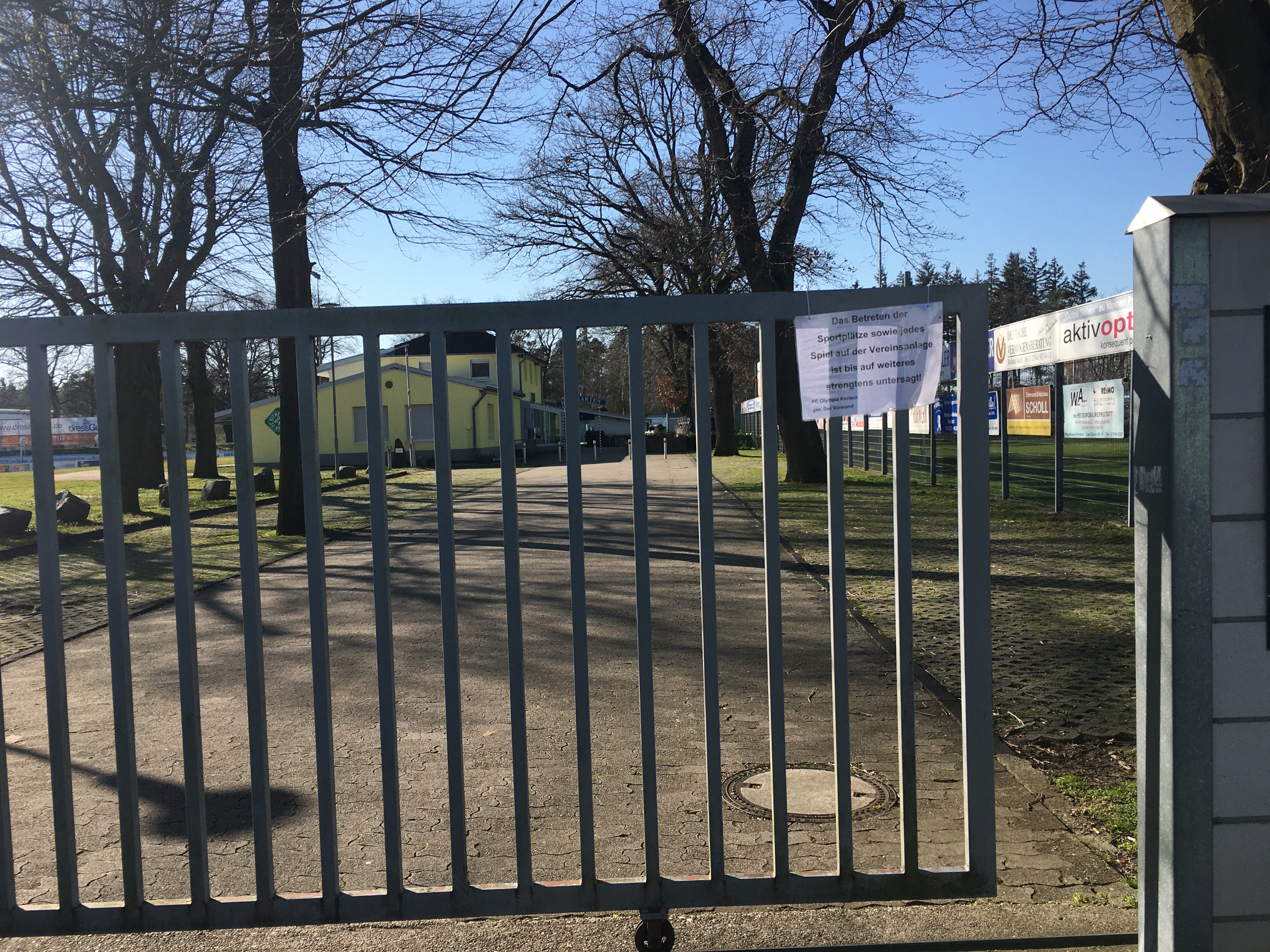 Gem. Verfügung des Landes BW ist die Nutzung der Sportplätze einschl. Kunstrasen-Kleinspielfeld für jedermann untersagt. Zuwiderhandlungen werden verfolgt.